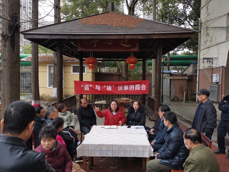 “齐心”协商及时议事。街道党工委牵头,各社区党组织建立与居委会、业委会、物业四方联动机制,依托“有事好商量”平台明确职责定位、制定流程规则、设置服务清单,结合“我为群众办实事”项目进行安全隐患排查、社区环境提升、弘扬文明新风等,共计开展各项议事协商共计40余次,完成电梯加装5部、智慧车库改建10个,拆除违规防盗门200余扇、休闲长椅改装升级20余把、共享晾衣架加装30余组、楼栋翻新20余幢,小游园改造5处等。