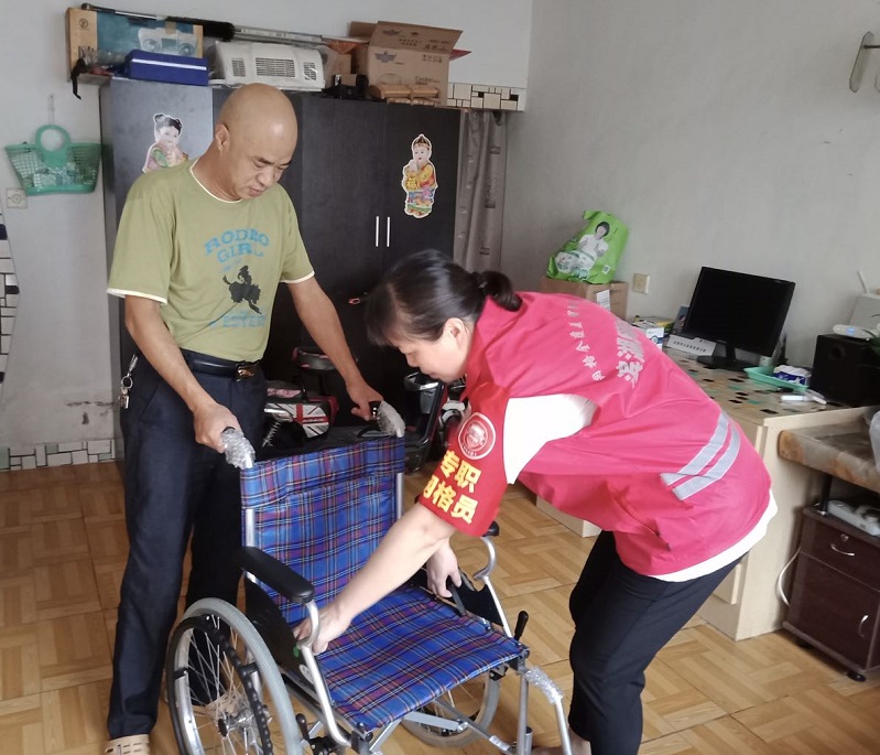 “太感谢社区了,有了轮椅我今后生活更方便了。” 陈可红激动地说。今年74岁的陈可红老人早年前因意外事故导致腿部致残,生活起居难以自理,平时只能呆在家中,无法参与社会活动。网格员通过走访慰问与区、街道残联取得联系,在区、街道残联的关心下,将崭新的轮椅车送到了陈老伯手中,并调节轮椅高度,让陈老伯更有舒适感。网格员看着陈老伯开心的笑容说:“为居民服务是网格员的责任,今后,有什么需求可以积极与网格员零距离沟通,社区会切实解决”。社区网格员通过入户走访等方式开展调研工作,全面掌握社区残疾人基本情况、服务需求,分类建立政策保障、送医问药、文娱活动等需求清单,实现供需对接,把关心与关爱送到每一位残疾居民身边。