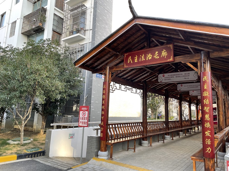 这是荣巷社区“善治荟”三级联动协商共治平台的最新成果。据悉,梁湖南苑一片区14号、15号的居民曾向社区提出,要求修建亭廊,满足大家日常生活休闲的需要。为此,荣巷社区党委组织了小区支部书记、怡庭物业、一片区居民自治小组、亭廊安装公司召开共治联席会,一同讨论选址、款式等可行性方案。在经过实地查看与现场协商后,确定了施工方案,最终大家一致赞成在梁湖南苑18-19号楼栋间建设长廊,目前长廊已经竣工并投入使用。
