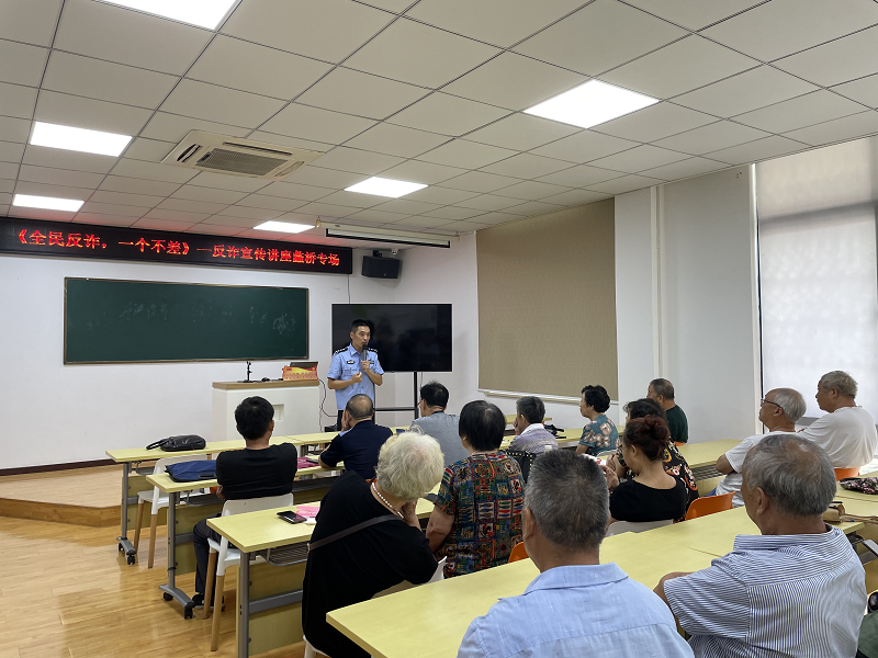抓牢普法教育,营造良好法治环境。为进一步提高辖区居民法律意识和防骗安全意识,蠡桥社区积极开展各类法治讲座、模拟法庭活动,创造和谐稳定的法治新环境。为有效预防打击电信网络诈骗违法犯罪活动,蠡桥社区积极联合“大党委”联盟单位河埒派出所,协调资源,邀请办案经验丰富分民警,用幽默的语言给大家开展生动有趣的反诈宣讲课,通过讲解常见电信诈骗相关知识,例举在工作过程中遇到的真实案例,让大家充分了解电信诈骗的最新形式,普及法律知识,同时也通过宣传引导,发动党员干部群众一起开展打击治理电信网络诈骗犯罪工作,实现党群同心合力反诈。