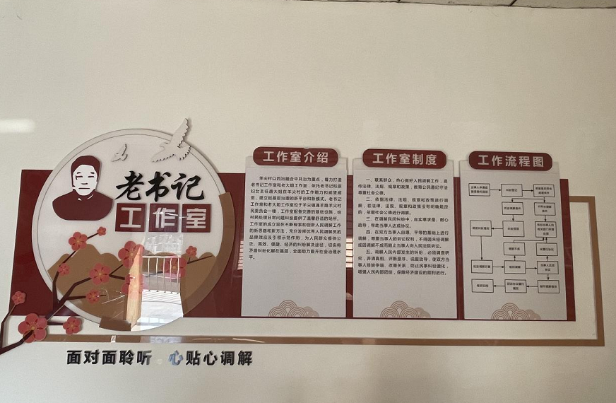 羊尖村以共治为重点,着力打造以老书记工作室和唐大姐工作室为主的热心肠党员志愿者服务队,依托老书记和唐大姐的工作能力和威望威信,建立起基层治理的新平台和新模式。工作室配备完善的基础设施,给村民处理日常问题纠纷提供了温馨舒适的场所。工作室的成立旨在不断探索人民调解工作的新思路和新方法,充分发挥优秀人民调解员品牌效应及引领示范作用,为人民群众提供公正、高效、便捷、经济的纠纷解决途径,切实将矛盾纠纷化解在基层,助力提升社会治理水平。工作室成立初期一直注重“示范先行”,目前已经着手解决多起关于房屋纠纷和家庭纠纷,从开始的争吵到最后心平气和解决问题,老书记、唐大姐以及志愿者们凭借耐心和毅力,化解了一个个难题。
