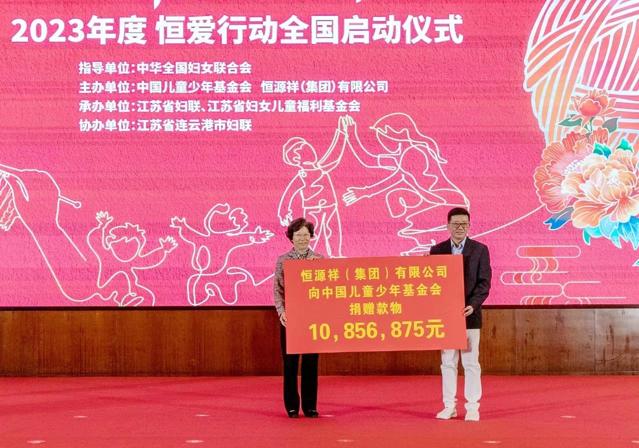 2005年,在全国妇联指导下,中国儿基会联合恒源祥集团共同发起“恒爱行动”公益项目。项目实施18年来,恒源祥集团已累计捐赠毛线约82万斤,捐赠款物价值1.25亿元,联动全国31个省(区、市)和新疆生产建设兵团妇联,中央和国家机关近100家部委单位及港澳台地区百万爱心家庭参与编织,累计为新疆各族儿童和其他困境儿童编织捐赠近140万件爱心毛衣。