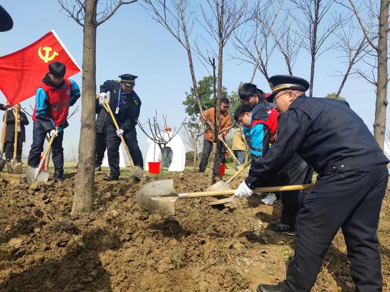梁溪城管北大街中队“雷锋班”联合长庆路社区开展“植树种绿,美化环境”义务植树活动,活动有30多位志愿者共同参与,以实际行动弘扬植绿、护绿、爱绿的文明新风,营造出全民参与植树造林的良好氛围。植树现场,城管队员和志愿者们热情饱满、干劲十足,有的拿铁锹,有的运树苗,各个环节衔接有序,到处都是忙碌的身影和劳动的欢声笑语。1个多小时的时间,20余株石榴树苗便挺立在吉庆街小游园里。大家用自己的实际行动种下绿色希望,成为春天里一道靓丽的风景线。参加植树活动的城管队员表示:“希望以一棵树、一抹绿、一份爱表达共建美好生态环境的决心,持续促进辖区生态文明建设,践行绿色低碳生活方式。”
