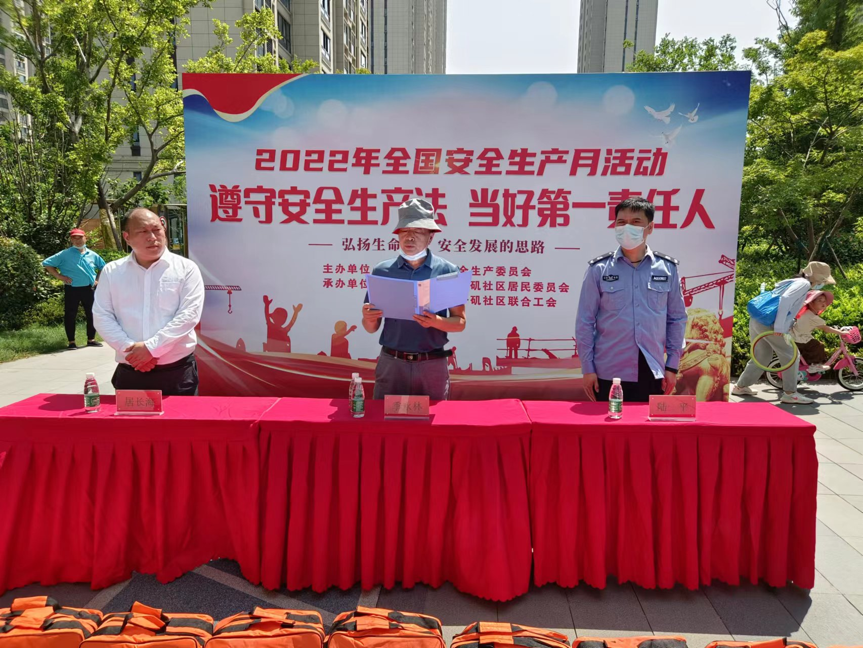 燕子矶街道安全生产分管领导季永林主任作开幕致辞:安全生产是社会稳定发展的基础,更是广大人民群众根本利益的保障。燕子矶街道结合当前工作实际,盯紧当前疫情防控和安全生产形势,压实自身责任,通过多种宣传教育途径和手段,广泛开展安全环保宣传活动,不断强化红线意识,凝聚安全环保发展共识,坚决遏制重特大事故发生,为辖区高质量发展提供安全和谐的环境。