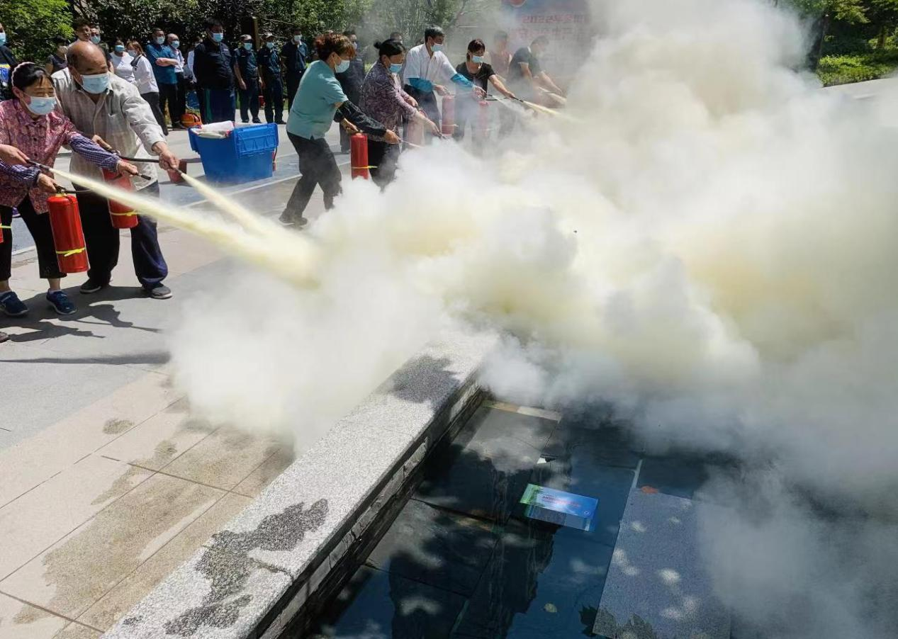 中通消防专家安向群众讲解家用消防器械种类,现场演示消防器具的使用方法。