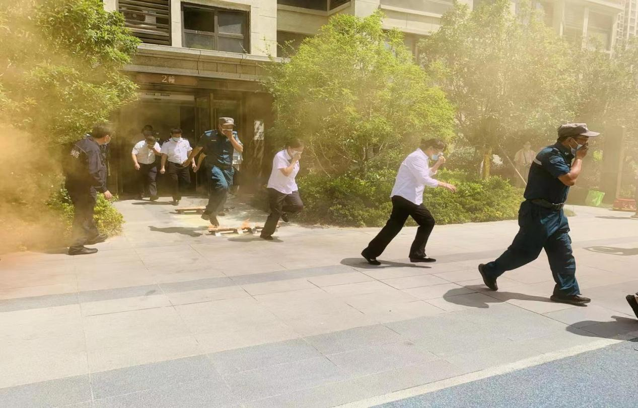 中海燕子矶听潮小区居民积极参加高层应急逃生演练。