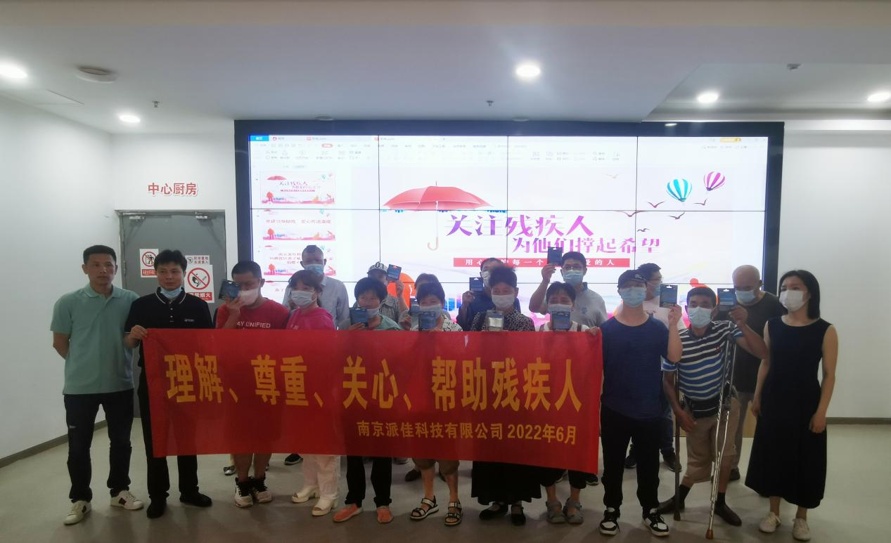 最后,南京派佳科技有限公司与燕子矶街道残疾人之家共同签订了党建助残联盟合作协议,并为20户困难残疾人家庭发放购书卡并合影。