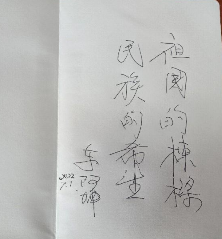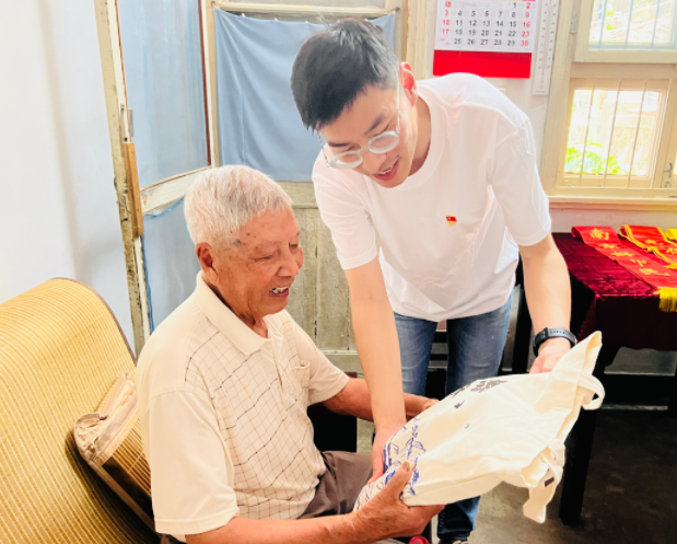 活动中,新党员走访团来到车阿坤老人的家,为老人送上节日祝福。据了解,车阿坤老人曾是一名抗战老兵,12岁参加抗日战争,解放后为抗美援朝战争的胜利做出了贡献。如今已经90岁高龄的车阿坤老人,讲述起在党的过往经历,依旧精神饱满、声音有力。作为革命的亲历者、见证者,车阿坤老人对青年一代党员们寄予厚望。“祖国的栋梁,民族的希望。”车阿坤老人为青年们写下这样的寄语。在场青年党员苏融表示:“与老党员共同追忆峥嵘岁月、展望美好未来。不忘初心,不忘劳模,是我们新时代青年的使命。”