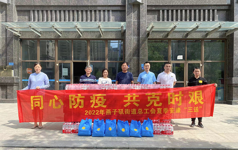 在新城指挥部,张立新感谢他们为大美燕子矶作出的贡献,对他们不怕苦,不怕累的精神所感动,并叮嘱相关工会在加强疫情防控的同时切实关心关爱职工。在南京中电建物业管理有限公司,舒馨在给企业送上清凉饮料同时还不忘给大家送上藿香正气水、风油精、花露水等劳保用品。