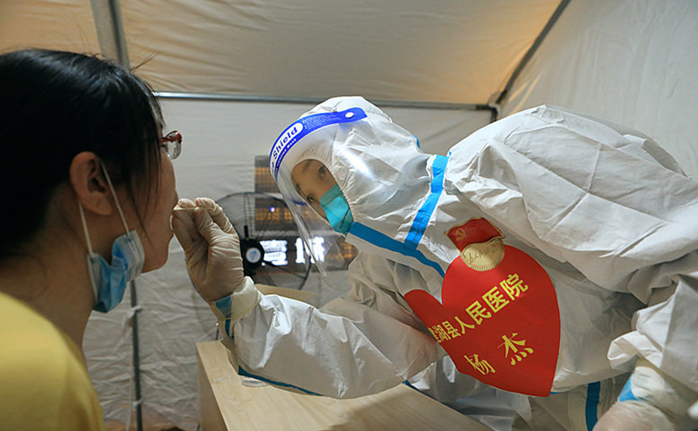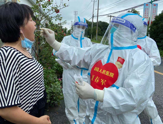 第一批到达栖霞区的援兵顾不上休整,换上防护服,立即投入各卫生院协助开展核酸采样工作。炎炎烈日下,他们穿着防护服、隔离衣,几分钟就浑身湿透。脸蛋压红了,鼻子磨破了,手掌泡白了……大家毫不退缩,依然坚守在第一线,用耐心和细心,有条不紊地开展检测任务,他们以实际行动诠释着“健康所系,性命相托,救死扶伤,不辞艰辛”的誓言。(赵旻)