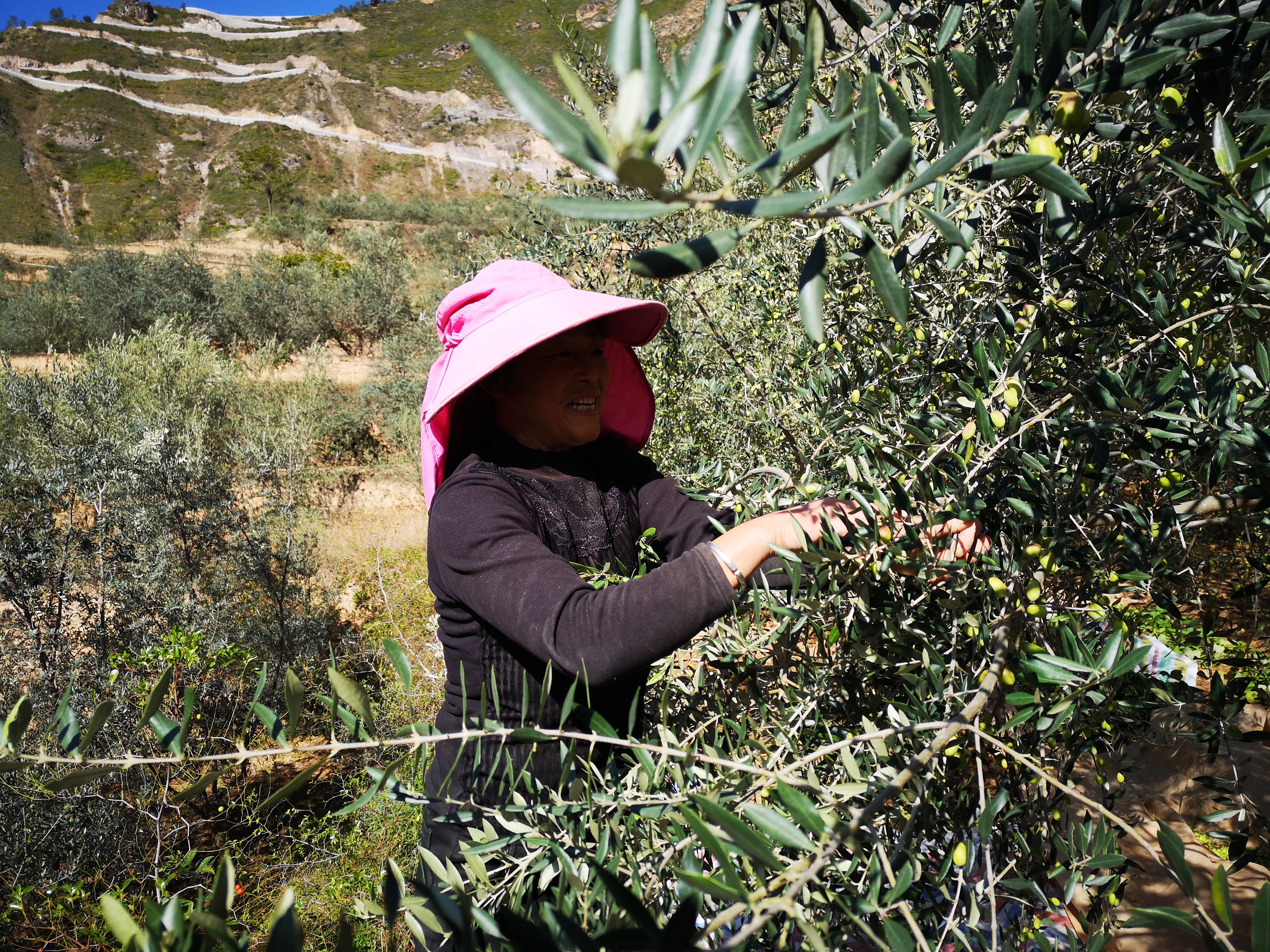 (图:农户在采摘油橄榄)