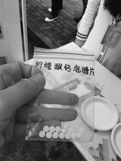 河南科技大学的作品更加新奇,这些白色小药粒是由蛋壳制成的。“干鸡蛋壳是重金属含量低的一种优质安全的钙源,许多蛋壳被直接丢弃。我们想到以鸡蛋壳为原料,制作成补钙的泡腾片,变废为宝。”一位同学介绍说。