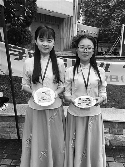 渤海大学食品科学与工程学院大二几位同学展示的作品——“水墨玛瑙鸡肉卷”,这种块状的鸡肉卷切开后,会变成一幅幅漂亮的水墨画。刘奇菡同学告诉记者,这款鸡肉卷加入了松花鸭蛋、鹌鹑蛋和辽宁特产——沟帮子熏鸡,用磨具制作成卷,每次制作成品后切开来的画面不一样。