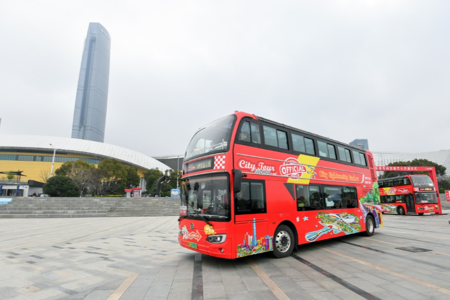 观览太湖“更上一层”!苏州吴江太湖新城开行双层巴士