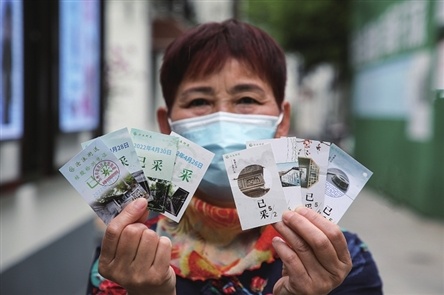 昨天,一位市民向记者展示姑苏区沧浪街道制作的印有“乘骝静影、甘泉冷月、忠仁怀风、道台飞云、畅园临流、桃园春晓、德寿探幽、鹿麟读晨”道前八景内容的核酸已采卡。