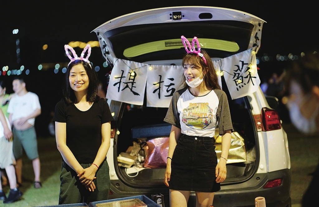 前天晚上,一些年轻人在吴中区东太湖边开启“后备箱”夜市,大家用五颜六色的彩灯装饰起爱车车尾,个性十足的“后备箱”摊位和琳琅满目的商品让人流连忘返。记者 杨海石 摄