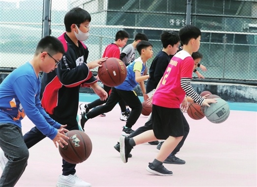 10月7日,在苏州中心一处运动场,不少家长陪伴孩子来此练习篮球、网球、羽毛球等,让孩子们享受运动的快乐。