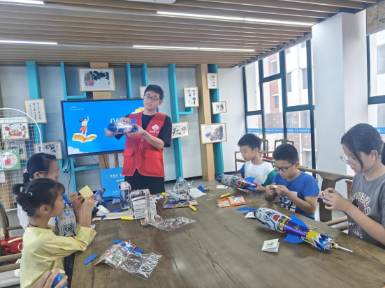 最后的“手抛火箭比赛”和“航空航天模型立体拼图”环节,孩子们分组协作,亲手制作并发射简易手抛火箭。一架架“小火箭”划破空气,划过优美弧线,现场欢呼与掌声不断。“我长大了要造真正的火箭!”一位小朋友完成拼图后激动地说道。小小的模型,承载着远大的理想;一次次的尝试与成功,悄然在孩子们心中植下“科技强国”的信念。