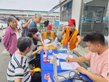 活动现场设置多个服务点位,精准对接居民日常需求。卫生院医护人员耐心为居民测量血压,细致讲解高血压防治知识,针对老年人常见健康问题提供专业建议;眼部雾化服务点前,工作人员首先为有需要的居民进行视力测量,同时为用眼疲劳的居民开展眼部舒缓;磨刀、修伞点位,居民看着师傅熟练地使用工具,让旧刀具恢复锋利、坏雨伞重获使用价值;爱心义卖区域,手工艺品与生活用品整齐摆放,所得款项将用于社区公益事业;口腔检查点位上,医护人员细致检查口腔健康,普及护牙常识。社区工作人员、爱心志愿者也全程参与,协助引导居民、维护现场秩序,让服务更显高效。