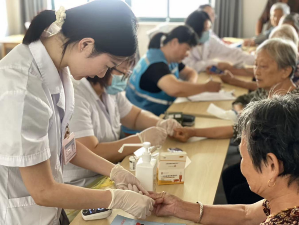 活动现场,健康讲座与义诊服务同步开展,切实满足居民多样化健康需求。在讲座环节,内科医生邱凯丽以通俗易懂的语言,围绕高血压的基本概念、潜在危害、诊断标准及科学治疗方法展开详细讲解,重点强调“早预防、早发现、早治疗”的重要性,同时结合日常生活习惯,给出合理饮食、规律运动、控制体重等实用建议,帮助居民建立科学的健康管理理念,现场居民认真聆听并积极提问,互动氛围热烈。在义诊环节,医务人员耐心为到场群众逐一测量血压、检测血糖,仔细记录各项指标数据。对于血压、血糖指标异常的居民,医务人员当场进行针对性健康指导,详细告知后续监测频率、饮食调整方向及用药注意事项;对存在其他健康疑问的居民,也逐一进行专业解答,用细致服务为居民健康保驾护航。