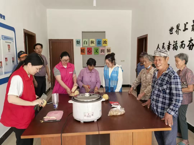 凤凰泾村开展的小吊梨汤制作活动同样精彩。志愿者首先向大家普及秋季养生知识和梨汤的制作方法。随后,居民们聚在一起,清洗食材、细心熬制,空气中弥漫着梨子的清甜。一碗碗热气腾腾的梨汤,不仅润肺去燥、顺应时令,更将一份暖心的健康关怀传递到居民手中。