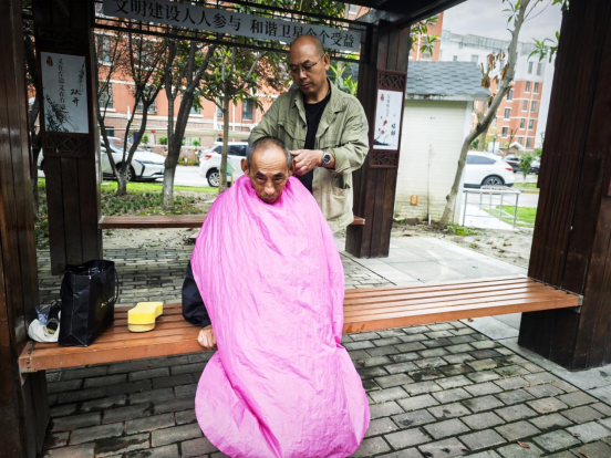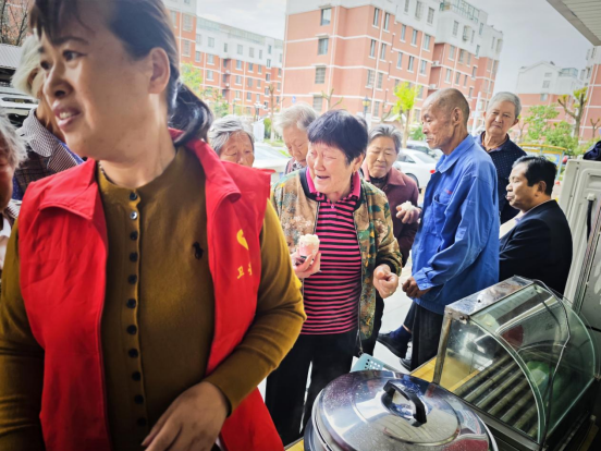 活动主场地设在小区长廊,清晨9点起,巾帼志愿者便提前到场签到,有条不紊地布置场地,迎接老人们的到来。随着活动正式启动,长廊内迅速热闹起来,三大便民服务专区同步开展,让老人在家门口就能享受贴心服务。在健康服务专区,牙博士专业人员耐心为老人测量血压,细致检查口腔健康,针对不同老人的身体状况给出个性化护理建议,不少老人拿着检查单连连称赞:“在家门口就能看牙,太方便了!”免费理发专区前,志愿者娴熟地为老人修剪头发,剪刀起落间,老人们的精神面貌焕然一新,脸上露出满意笑容。美食体验区同样人气十足。志愿者们手捧热气腾腾的爱心米糕,逐一递到老人手中,爱心米糕的香气伴着温暖的问候,让老人们心里暖洋洋,老人们边品尝边交流,现场满是欢声笑语。
