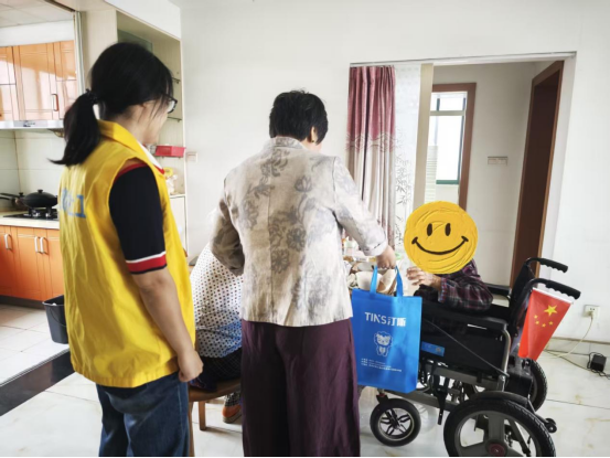 便民服务告一段落后,社工与志愿者组成探访小组,带着爱心爱心米糕、牙刷牙膏等慰问品,前往社区高龄、行动不便老人家中,开展入户探访慰问活动。在老人家中,志愿者们与老人亲切交谈,详细询问老人的身体状况和生活需求,耐心解答老人提出的问题,让老人感受到浓浓的关怀与陪伴。
