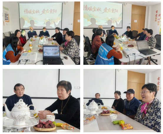 活动现场布置温馨,主题背景搭配重阳元素装饰,桌上的菊花茶、水果与糕点传递着暖心细节。茶话会伊始,工作人员向在场老人致以诚挚的节日问候,感谢大家长期以来的支持与信任,并祝愿每位长辈健康常伴、喜乐无忧。