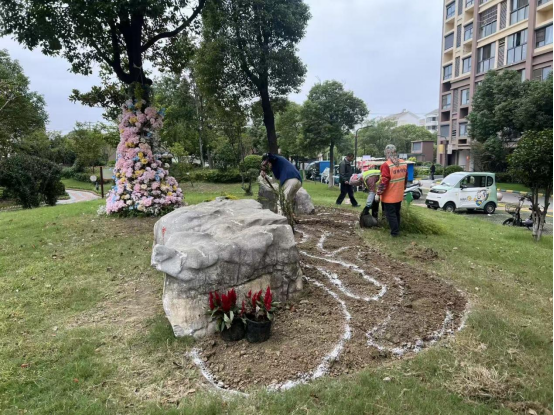 活动期间,双方党组织重点对瑜翠园和顺亭的植被退化区域实施了土壤改良,为后续种植奠定基础。在植物选择上,结合本地气候与土壤条件,精选了北海道黄杨、亮金女贞、安酷杜鹃、金森女贞等灌木,并搭配果岭草构建常绿植被层,确保四季有景。党员志愿者与施工人员协同作业,累计完成约748平方米的绿化提升,使原本裸露土地重现生机。此外,为丰富居民休闲体验,在彩叠湾儿童游乐园西侧打造了一处约60平方米的特色花境,栽种有果汁月季、蓝雪花、五色梅、翠芦莉等多种观赏植物。该花境现已成为小区内的亮点,不仅吸引居民驻足拍照,也为孩子们提供了亲近自然、认识植物的场所,有效丰富了社区文化生活。