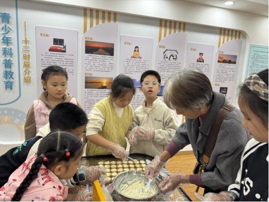 实践环节里,孩子们与奶奶们两两结对,瞬间化身“认真的小烘焙师”:他们踮着脚尖凑在操作台前,小心地将鸡蛋、牛奶、细砂糖按比例倒入碗中,手腕轻轻转动搅拌棒,直到蛋液变得细腻均匀;随后又握着小勺,慢慢将蛋挞液注入酥皮中,生怕洒出一滴;最后由老师协助,将摆满蛋挞的烤盘送入预热好的烤箱。等待烤制的间隙,现场更显温馨——孩子们围在奶奶身边,叽叽喳喳地分享着生活趣事:“奶奶,上次您给我缝的小熊,我每天都抱着睡!”“爷爷说他小时候爬树摘果子,可厉害啦!”欢声笑语中,陌生的邻里渐渐熟络,祖孙间的温情悄悄升温。