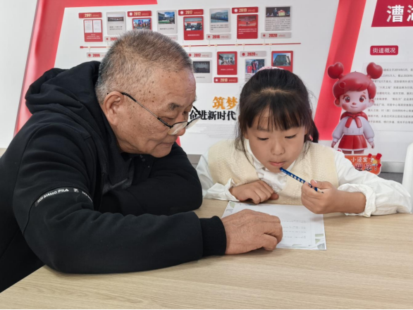 随后,在志愿者的引导下,每个家庭都收到了一份“家族寻根地图”任务卡。孩子们变身“小记者”,围绕在爷爷奶奶身边认真提问;长者们则成为讲述者,分享自己年轻时的家乡记忆、工作经历、兴趣爱好,以及家中老物件背后的故事。在交流中,不少孩子兴奋地展示自己发现的“家族宝藏”——“爷爷的蜜蜂牌缝纫机是我们家的传家宝,它见证了那个年代的勤劳与奋斗”“奶奶的针线包记录了勤俭持家的好家风”。这些真实而朴素的故事,让优良家风在言传身教中悄然延续。