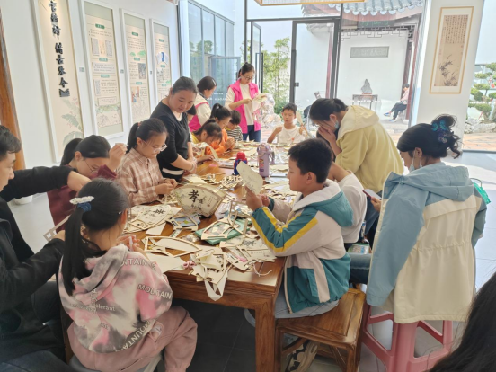 完成全线探索后,工作人员为每个家庭送上漕湖特色文创。在随后的家风主题手作中,亲子携手共制古风家训灯,在志愿者指导下,孩子们认真挑选材料,家长们细心协助,在默契协作中感受传统文化的魅力,体悟家风的温暖传承。