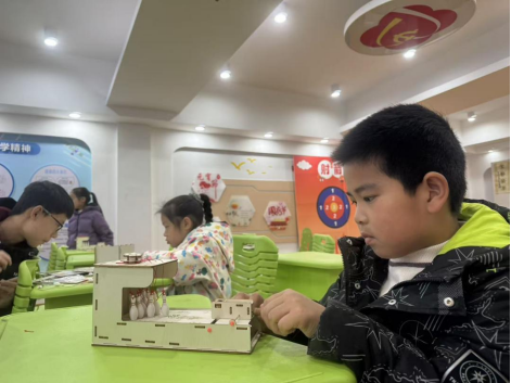 掌握基础科学知识后,迷你保龄球道与球瓶的设计制作环节正式开启。孩子们充分发挥想象力与创造力,将所学知识融入创作中,亲手打造专属的保龄球装备。制作过程中,大家互帮互助、协作分工,遇到难题时主动交流探讨,现场充满欢声笑语,氛围热烈而融洽。