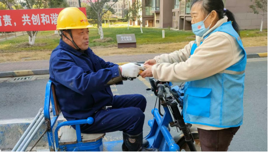 这份关怀也延伸至在寒冷天气中坚守岗位的户外劳动者。另一批工作人员将一份份温热的白木耳递到仍在户外辛勤服务的物业工程人员与保洁员工手中,感谢他们在低温下为维护社区环境与正常运转所付出的努力。