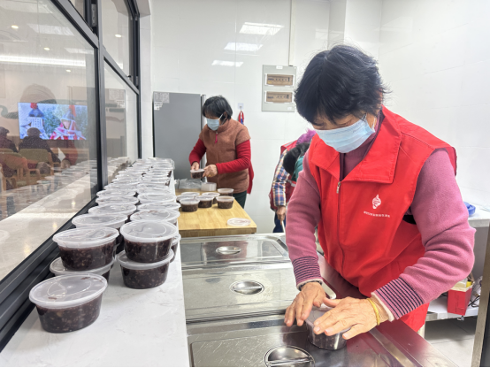 清晨,汤浜社区日间照料中心便飘出阵阵甜香,社区工作人员和志愿者们围着大锅忙碌,糯米、红豆、莲子、桂圆等食材在锅中咕嘟翻滚,黏稠的粥液裹着食材本香弥漫开来。“钱阿姨,快坐快坐,腊八粥马上就好!”志愿者热情招呼前来的老人。随着一碗碗腊八粥盛出装好,日间照料中心的老人们欢喜的接过由志愿者递来的暖粥。