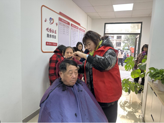 除了热闹的市集,社区还延续了每月的志愿服务传统,设置了“暖心志愿”专区。理发师志愿者为居民提供免费理发服务,修小家电的师傅则耐心地为居民修理电饭煲、电磁炉等家用电器。这些看似微小的服务,却实实在在地解决了居民的生活难题。一位前来修家电的老人说:“这个活动真好,帮我们省了钱,也省了麻烦。”