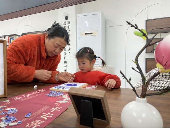 科普分享结束后,贴画DIY体验随即开启。现场工作人员细致讲解创作思路、材料用法及拼接技巧,鼓励孩子们结合腊八元素大胆创作。孩子们兴致盎然地挑选形态各异的瓷片,用瓷片勾勒出一碗碗热气腾腾的腊八粥。制作过程中,小朋友们相互交流、分享技巧,遇到难题时互相帮忙,同伴间的情谊在欢声笑语中悄然升温。不多时,一件件腊八粥瓷贴画作品就陆续完成了。