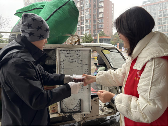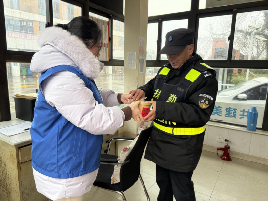 除了定点发放,社区工作人员还组成“送暖小分队”,将腊八粥打包,专程送到小区门岗、快递驿站等一线岗位。“没想到下着雨,你们还专门送过来,太感动了!”值守在小区入口的保安小陈接过粥碗,感慨地说。热粥驱散了阴雨的寒凉,也让这些平日里默默奉献的基层劳动者们感受到了来自社区的尊重与关怀。