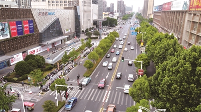 据介绍,万达商圈周边路段车流、人流量很大,遇上高峰时段,该路段车流量每小时可达900多辆。有时,为了礼让斑马线上的行人,不少机动车经常半天都挪不动窝。