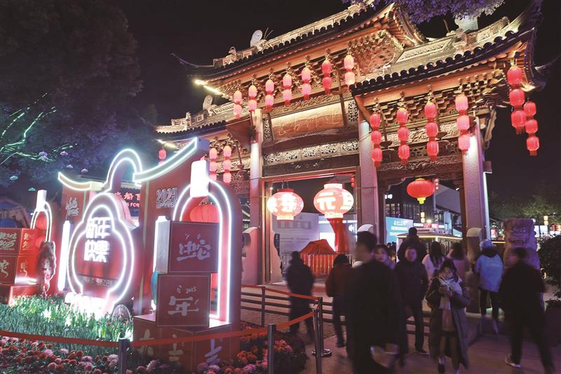 除此之外,商业综合体的外摆摊位上,各式各样的节日主题陈设也已布置一新,崇安寺中轴线上宫灯造型的“福启新岁”、三阳百盛广场上巨型招财猫、恒隆广场外的繁星市集将吸引市民前去打卡。(韩玲 文/宗晓东、吕枫 摄)