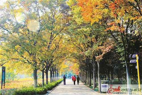 中国江苏网11月1日讯 作为国家生态园林城市,深秋的徐州,又是另一番景致。彭祖园、淮塔等繁茂的彩叶林中,榉树、枫叶、银杏等树木披上“新衣”,层林尽染,色彩斑斓,将秋日的彭城打扮得美丽异常,令人陶醉。本报全媒体记者 陈艳 通讯员 金铭 摄
