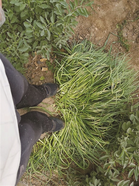 中国江苏网5月4日讯 在刚刚过去的“五一”假期,对于老家在邳州市八义集的高先生来说,既没有诗也没有远方,他家的几亩杂交蒜,正该提(di,第二声,方言)蒜苗,但因为价低无人收购,高先生家的几百斤蒜苗都是就地掩埋了。