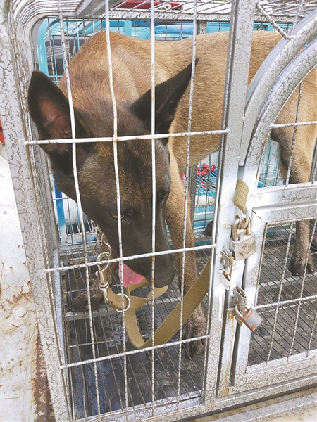 8月6日,一只未拴牵引绳的犬只被收容。全媒体记者 孙井贤 摄