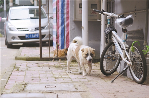 8月9日,莲花井小区,未拴绳的犬只在四处游荡。全媒体记者 孙井贤 摄