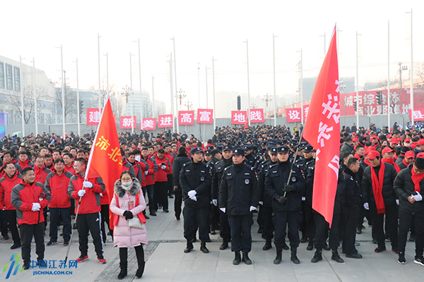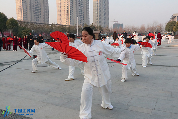 冬日的早晨寒意甚浓,大风歌广场却成为一片欢悦的海洋。太极拳、太极扇等健身方队提前热场,精彩的表演赢得阵阵掌声。写着“推进‘三地一新’新实践,建设‘强富美高’新沛县”等内容的标语牌无处不展示着沛县经济社会发展成就。5000余名干部群众精神抖擞,激情飞扬,展现出沛县人的精气神,也展现出沛县的发展活力。