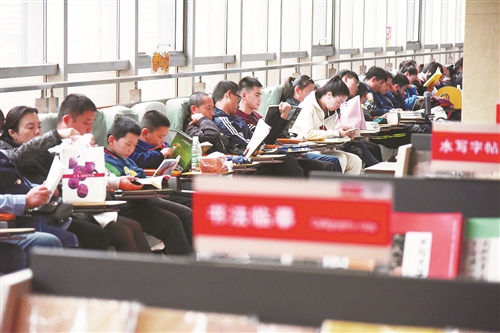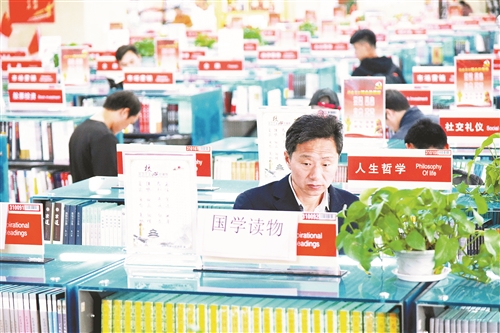 10月6日,在我市的一家书店内,众多市民在选购或阅...