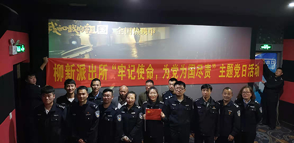 中国江苏网10月28日徐州讯 为弘扬爱国主义精神,10月24日中午12时30分,徐州市铜山区柳新派出所党支部集中组织全体党员到影院观看电影《我和我的祖国》。