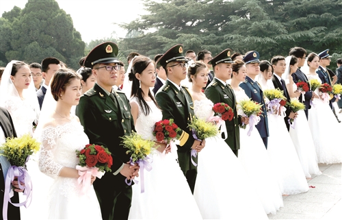 新婚夫妇在淮塔祭扫先烈成为一种情怀。