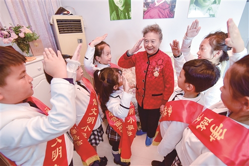 10月25日,云龙区少先队员代表在区关工委、区少工委的组织下,来到中国人民志愿军老战士王亚西老人家中采访、慰问,倾听英雄故事,学习英雄事迹。在采访中,王亚西老人深情地讲述了自己在抗美援朝战场上枪林弹雨的峥嵘岁月,展示了由中共中央、国务院、中央军委联合颁发的中国人民志愿军抗美援朝出国作战70周年纪念章,她勉励少先队员们要牢记历史,珍爱和平,用优异的成绩书写新时代的英雄故事。