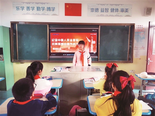 和平桥中心小学开展了“致敬抗美援朝,争做新时代好队员”主题队日活动。活动中,党员教师们深入各个年级,利用多媒体、图片、讲故事等形式,向队员们讲解抗美援朝战争的时间、背景以及参战的重大意义,师生共同追忆先烈舍生忘死的艰苦作战历程,切身感受革命前辈始终不渝的理想信念和精神。活动后,队员们纷纷表示,要坚定理想信念,继承光荣传统,勇敢担当时代使命,争做社会主义合格接班人。